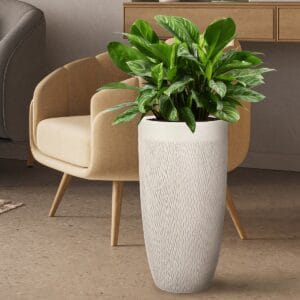 Напольное кашпо для цветов IDEALIST Страйп, круглое, цвет айвори, Д31.5 В43 см, 15 л, 4 кг
