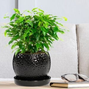 - Фикус — деревообразное растение с крупными, глянцевыми листьями, которое выглядит отлично в высоких кашпо.