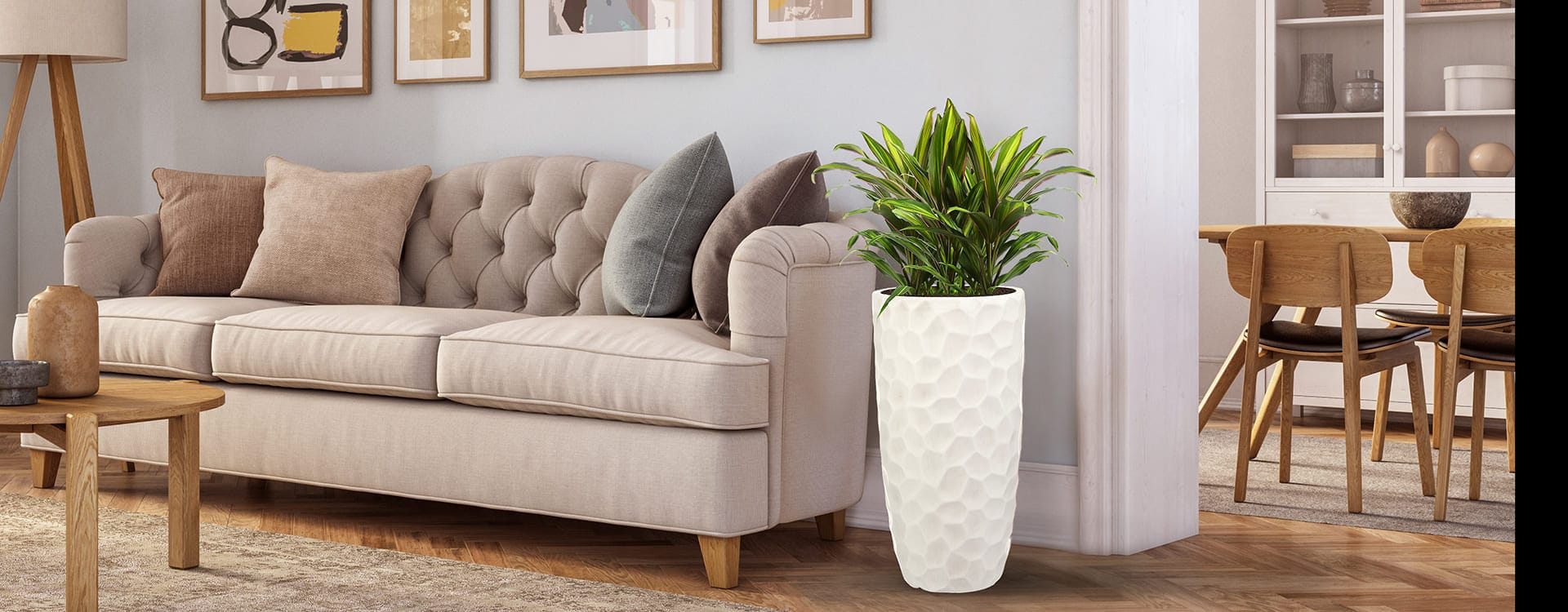 Высокие кашпо как элемент зонирования: как разделить пространство в небольших комнатах