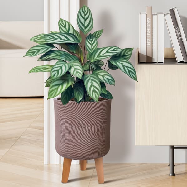 Напольное кашпо для цветов IDEALIST Страйп, круглое, цвет кофе с молоком, Д24 В40 см, 9 л, 3 кг