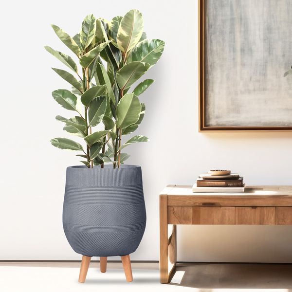 Напольное кашпо для цветов IDEALIST Страйп, серое, круглое, Д20.5 В32 см, 5 л