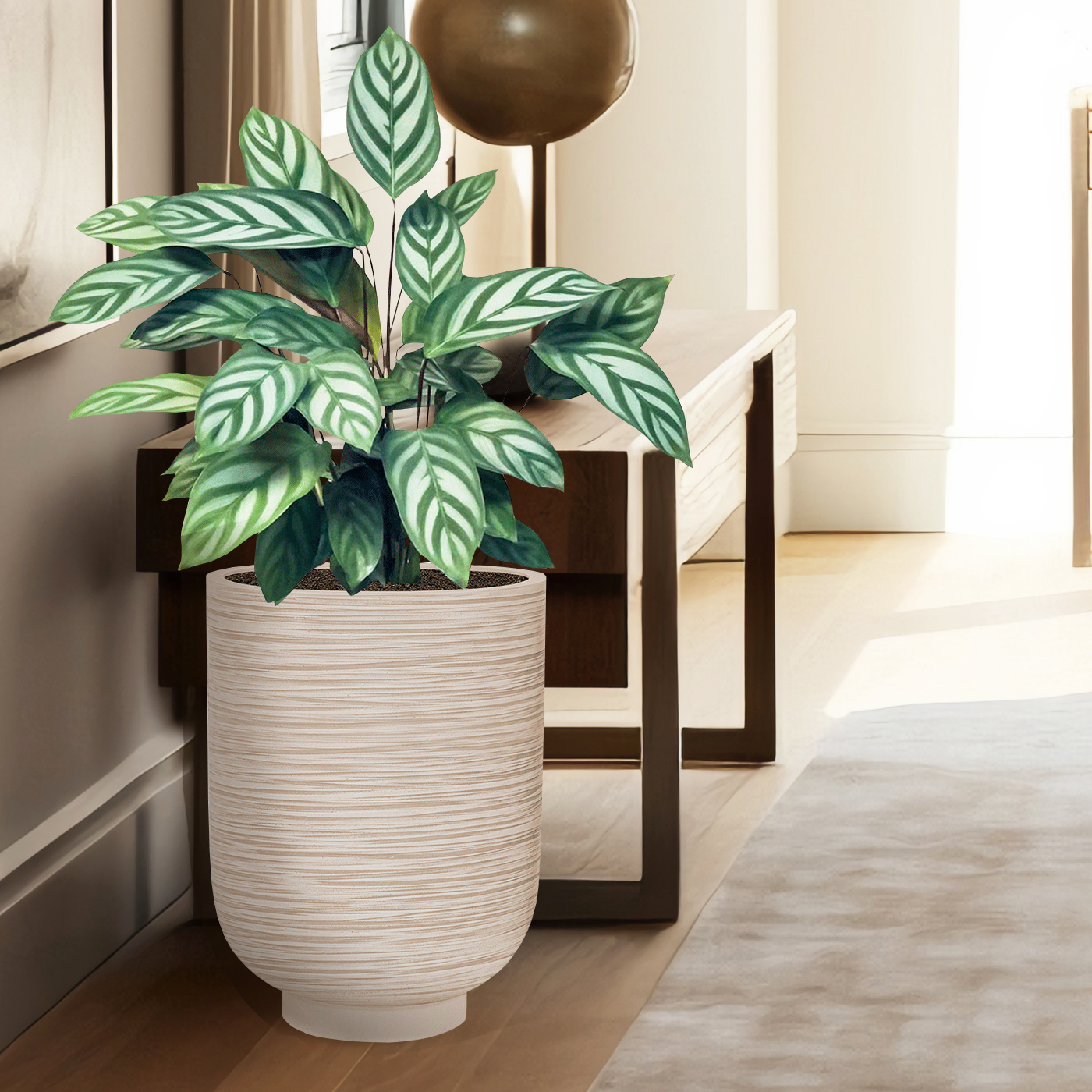 Настольное кашпо для цветов IDEALIST Урбан, круглое, бежевое, Д25.5 В25 см, 10 л, 2.5 кг