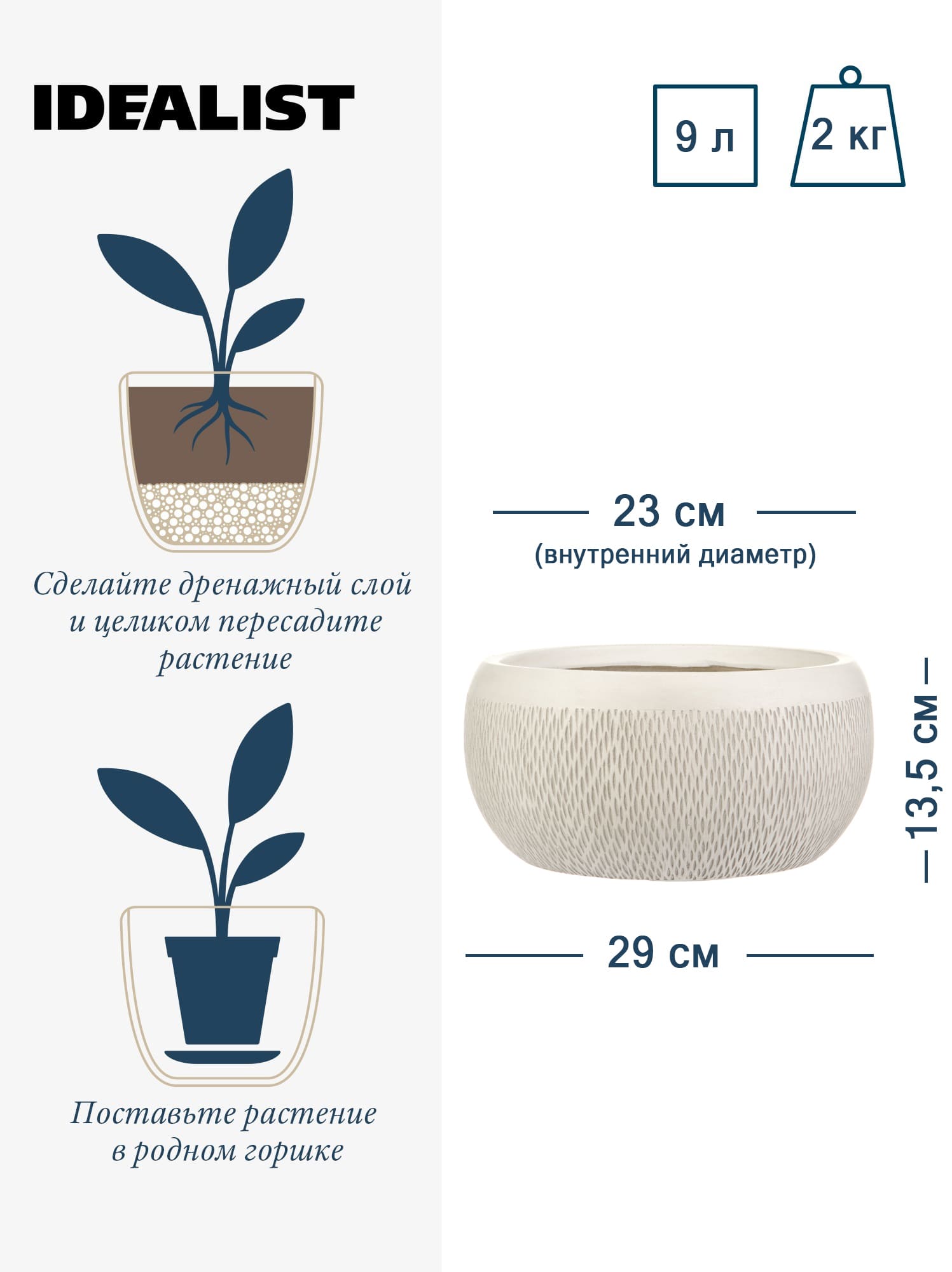 Настольное кашпо для цветов IDEALIST Лотус, круглое, цвет айвори, Д29 В13.5 см, 9 л, 2 кг