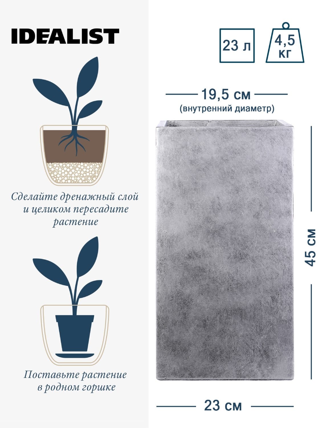 Напольное кашпо для цветов IDEALIST Крисмас, серебристое, Д23 Ш23 В45 см, 23 л, 4.5 кг