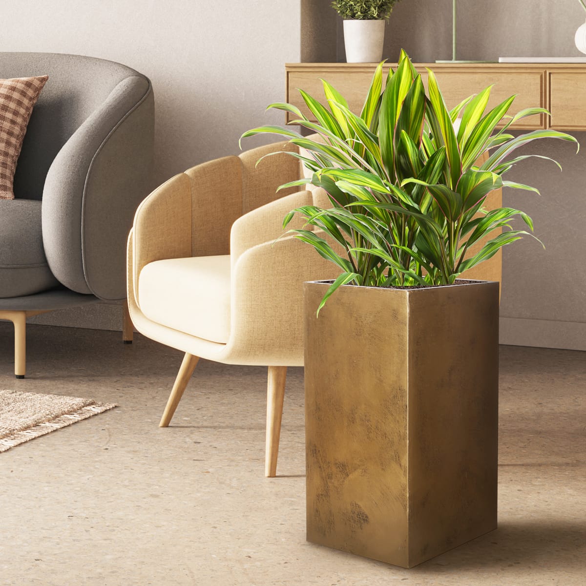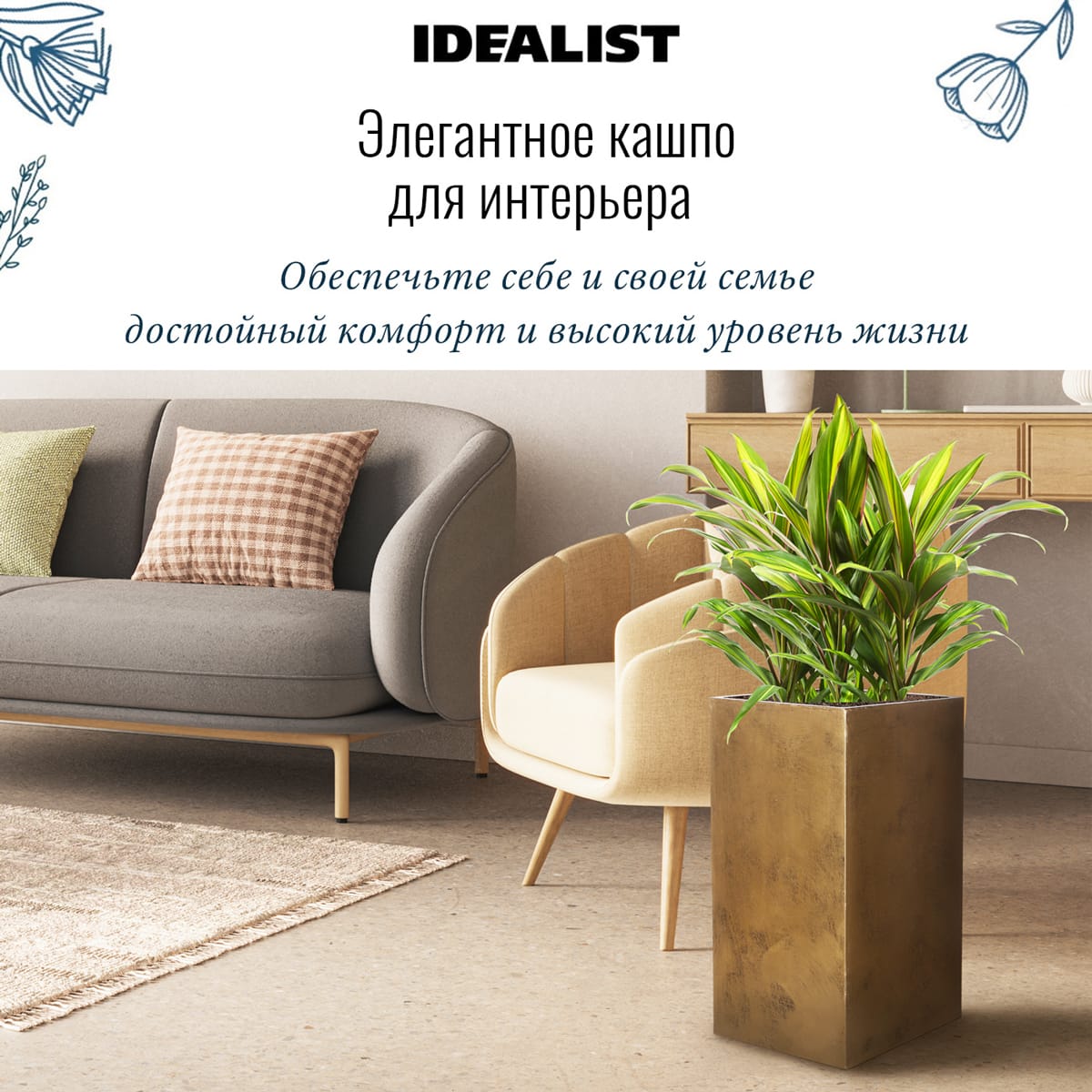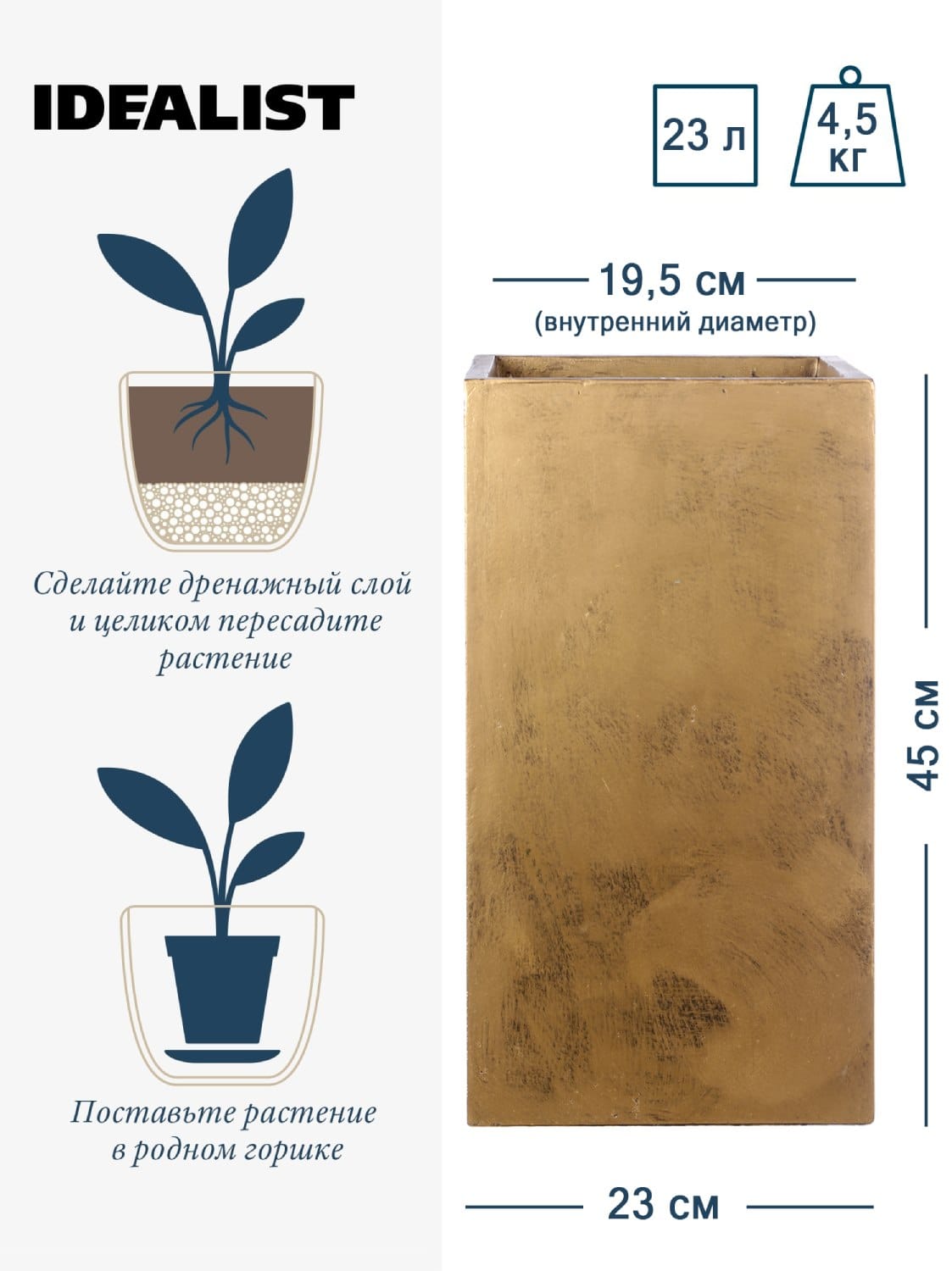 Напольное кашпо для цветов IDEALIST Крисмас, квадратное, цвет золотистый шик, Д23 Ш23 В45 см, 23 л, 4.5 кг