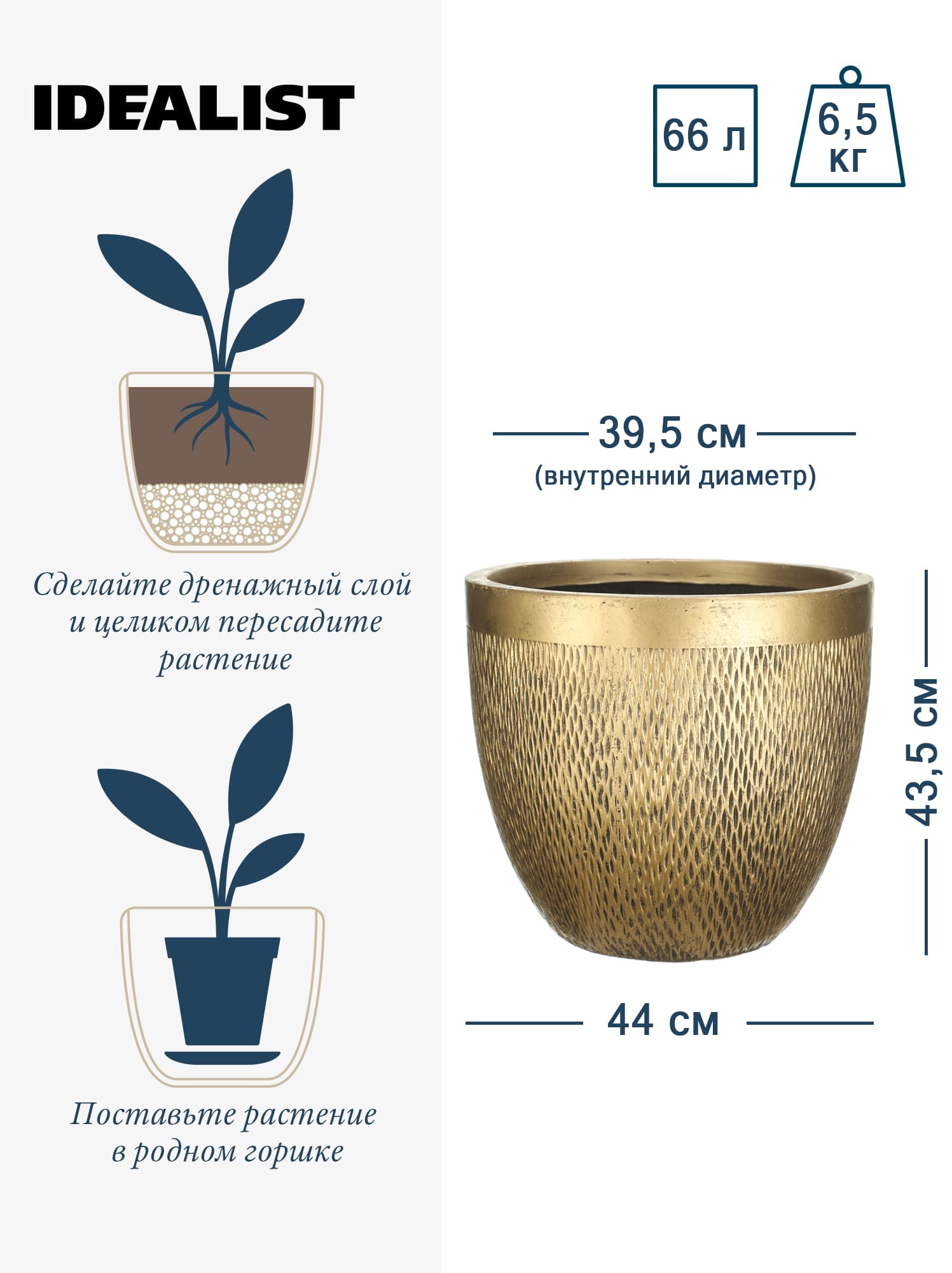 Напольное кашпо для цветов IDEALIST Лотус, цвет золотистый шик, Д44 В43.5 см, 66 л, 6.5 кг
