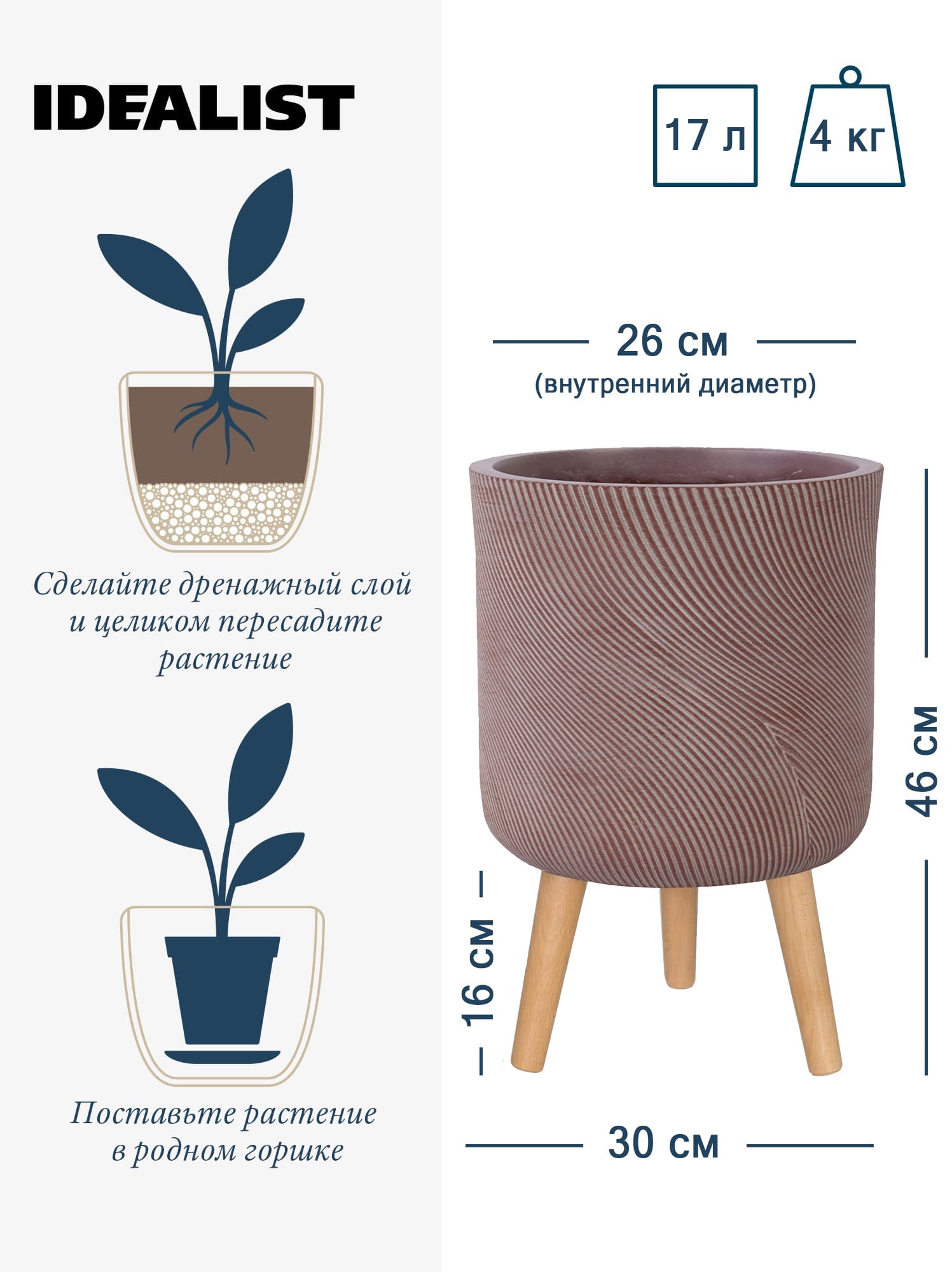 Обратите внимание, что правила и порядок удовлетворения требований возврата и обмена зависят от места приобретения кашпо IDEALIST. В случае возникновения недоразумений, пожалуйста, свяжитесь с нами по телефону: