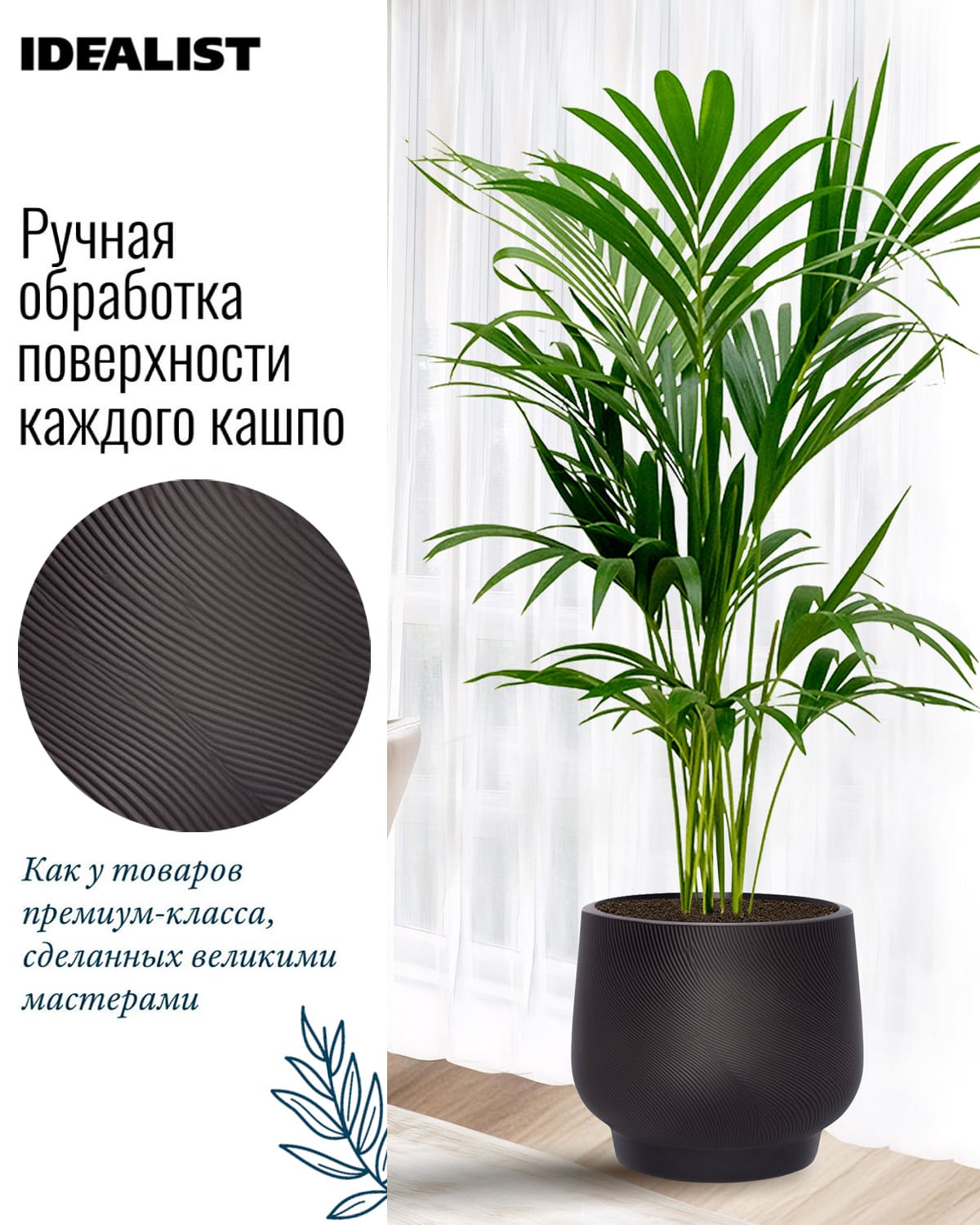 Обратите внимание, что гарантийные обязательства, правила и порядок удовлетворения гарантийных случаев, требований возврата и обмена зависят от маркетплейса приобретения кашпо IDEALIST. В случае возникновения недоразумений, пожалуйста, свяжитесь с нами по телефону:
