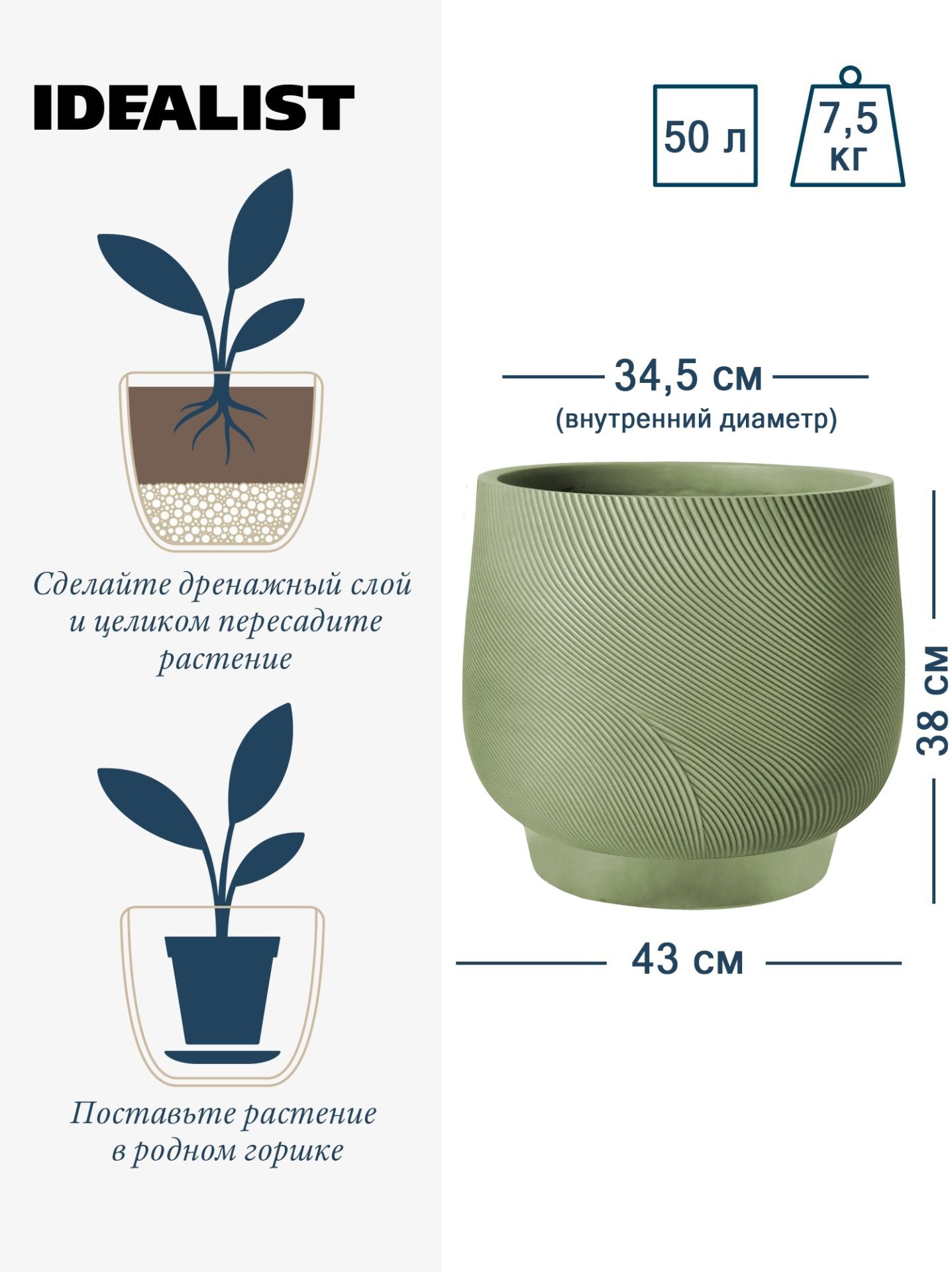 Обратите внимание, что гарантийные обязательства, правила и порядок удовлетворения гарантийных случаев, требований возврата и обмена зависят от маркетплейса приобретения кашпо IDEALIST. В случае возникновения недоразумений, пожалуйста, свяжитесь с нами по телефону: