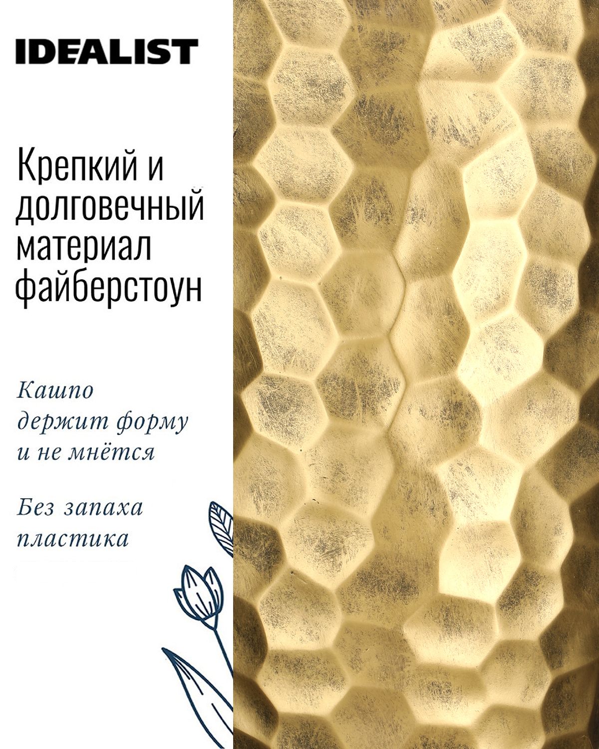 Обратите внимание, что гарантийные обязательства, правила и порядок удовлетворения гарантийных случаев, требований возврата и обмена зависят от маркетплейса приобретения кашпо IDEALIST. В случае возникновения недоразумений, пожалуйста, свяжитесь с нами по телефону: