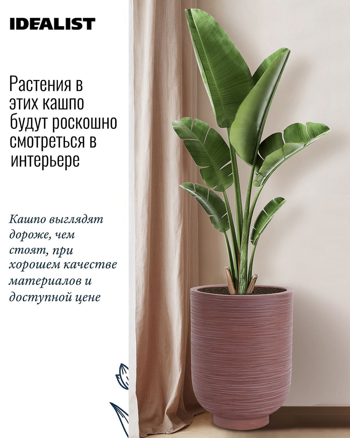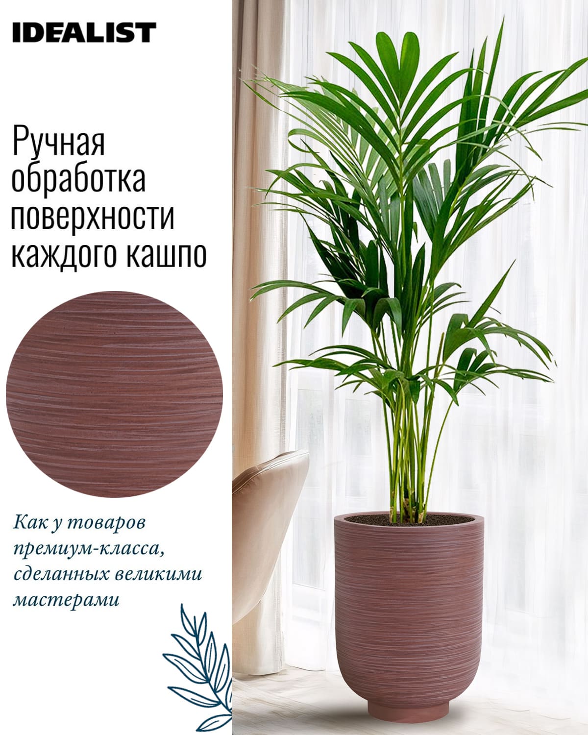 Обратите внимание, что гарантийные обязательства, правила и порядок удовлетворения гарантийных случаев, требований возврата и обмена зависят от маркетплейса приобретения кашпо IDEALIST. В случае возникновения недоразумений, пожалуйста, свяжитесь с нами по телефону: