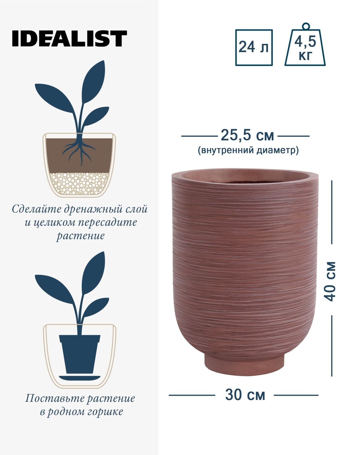 Кашпо IDEALIST (кроме моделей кашпо на ножках) можно размещать на улице, учитывая при этом место и вид растения, которое будет посажено.