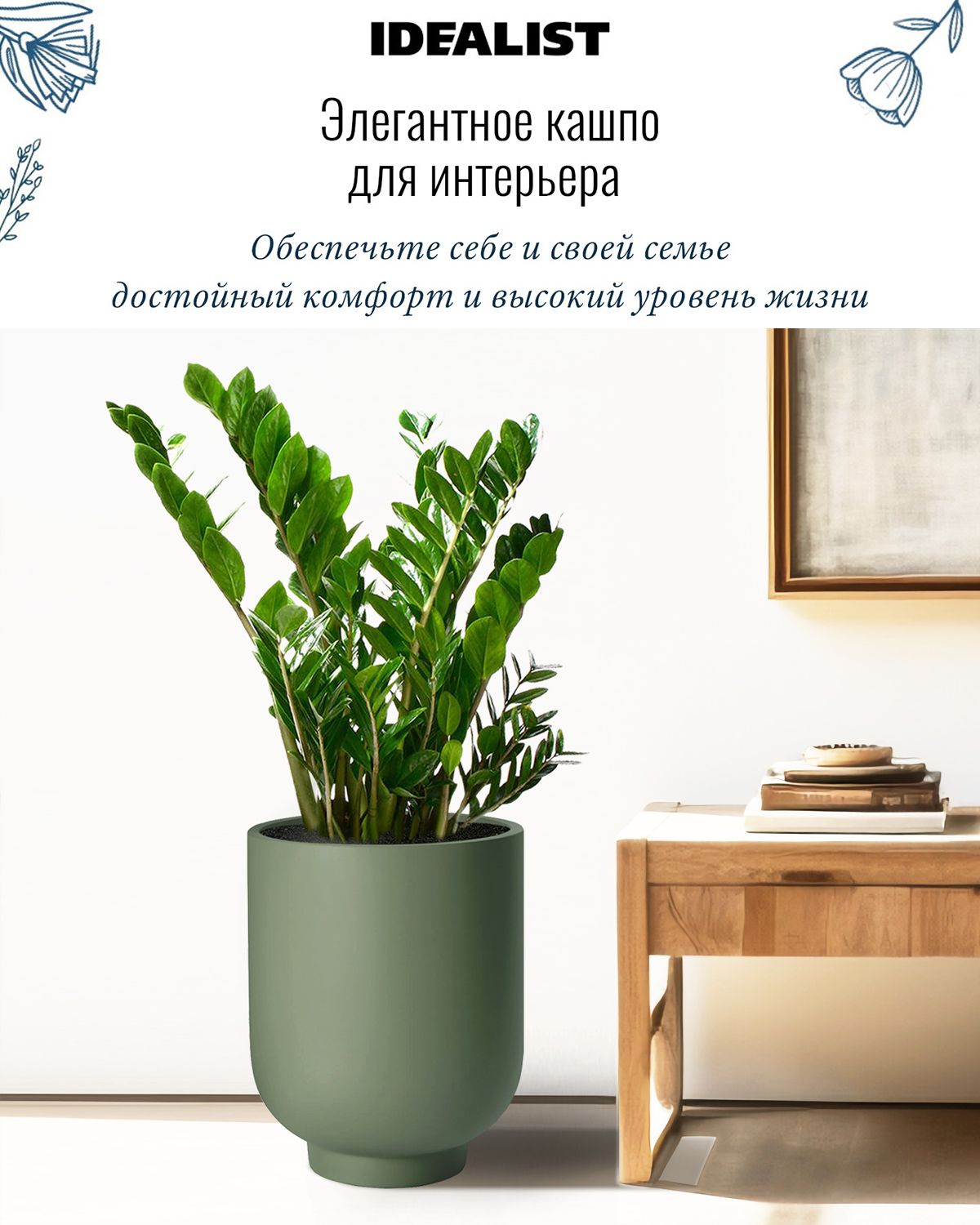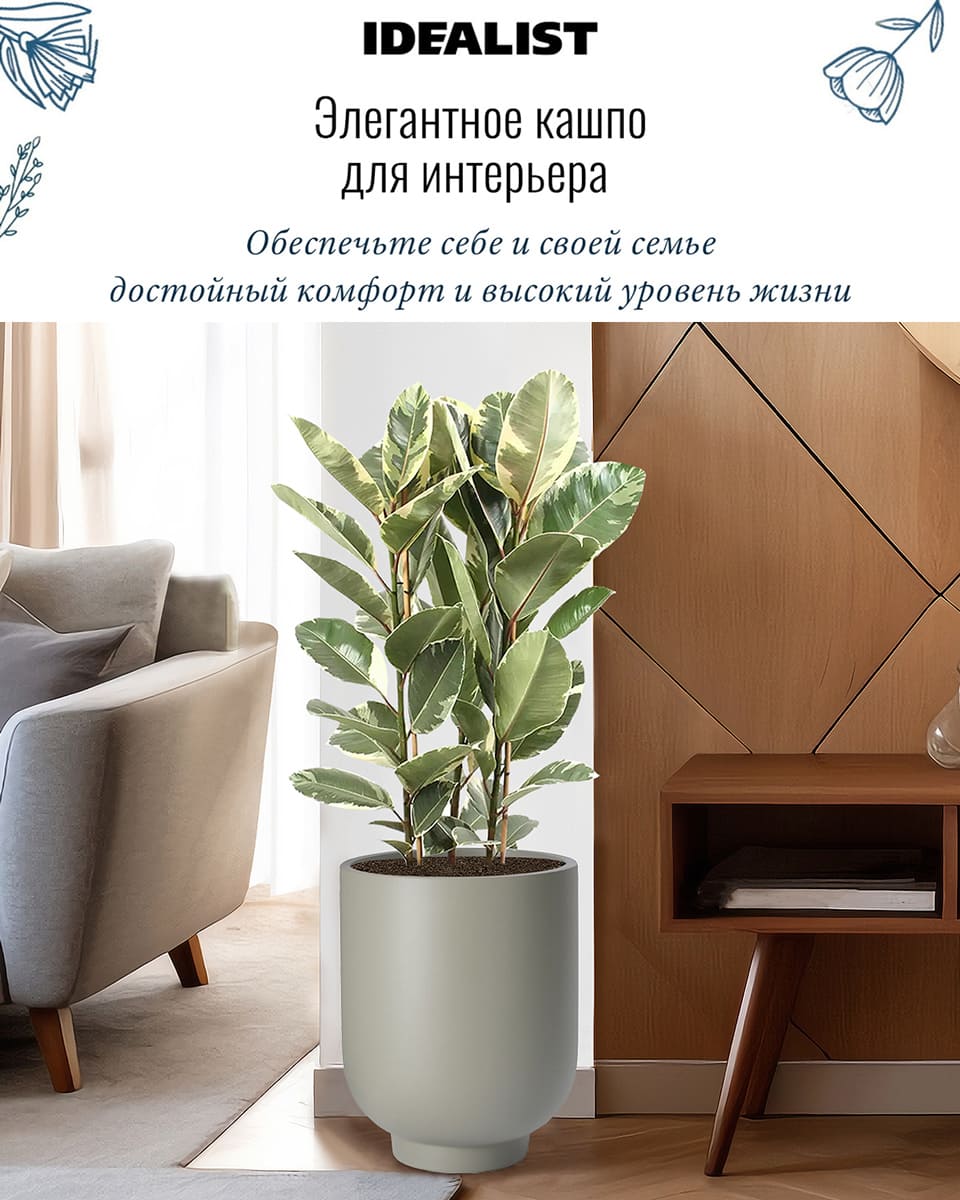 В кашпо IDEALIST можно сажать комнатные растения, которые растут в грунте (не гидропоника). Также можно сажать сезонные уличные растения, например, петунии или гортензии.