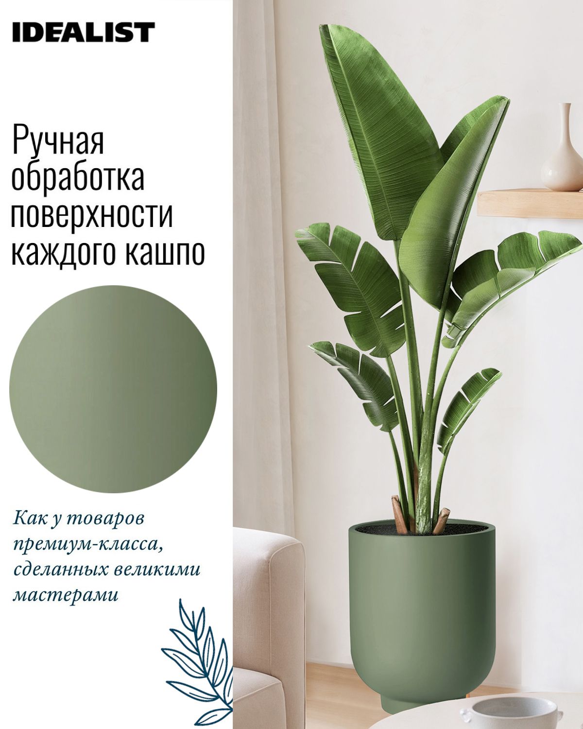 Обратите внимание, что гарантийные обязательства, правила и порядок удовлетворения гарантийных случаев, требований возврата и обмена зависят от маркетплейса приобретения кашпо IDEALIST. В случае возникновения недоразумений, пожалуйста, свяжитесь с нами по телефону: