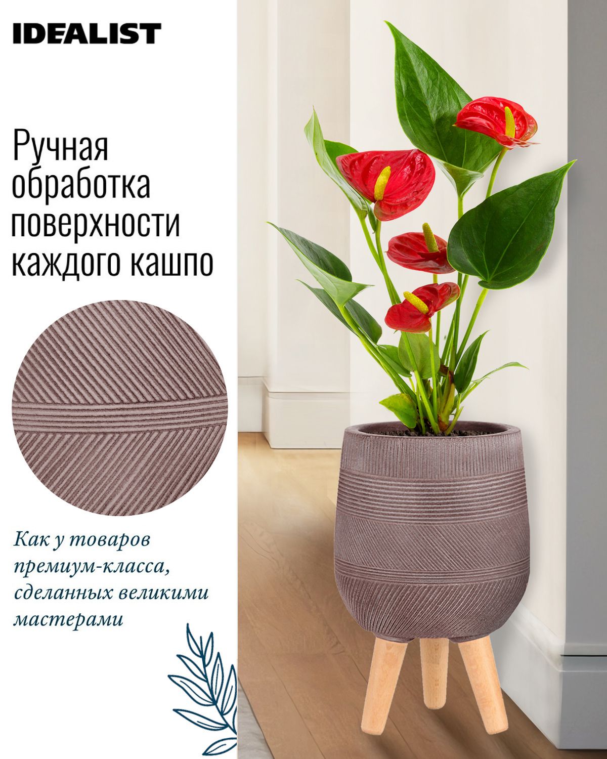 Обратите внимание, что гарантийные обязательства, правила и порядок удовлетворения гарантийных случаев, требований возврата и обмена зависят от маркетплейса приобретения кашпо IDEALIST. В случае возникновения недоразумений, пожалуйста, свяжитесь с нами по телефону: