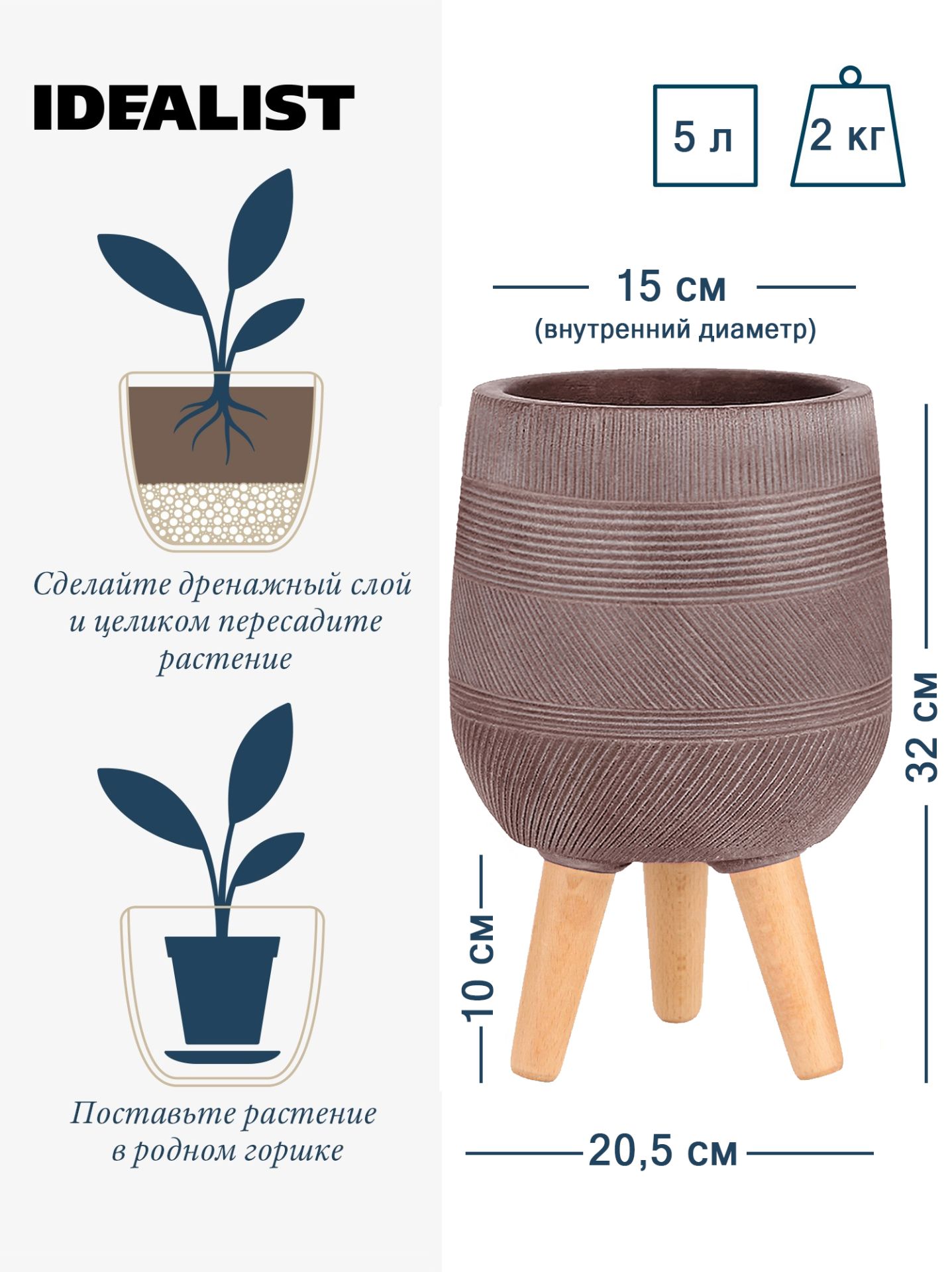 Обратите внимание, что правила и порядок удовлетворения требований возврата и обмена зависят от места приобретения кашпо IDEALIST. В случае возникновения недоразумений, пожалуйста, свяжитесь с нами по телефону: