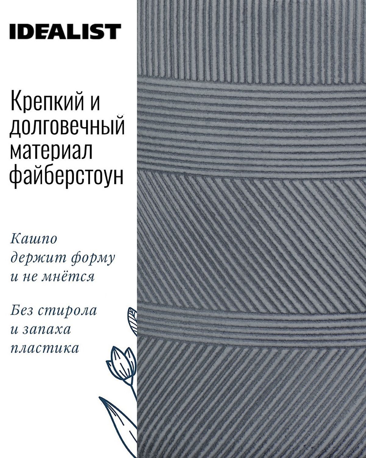 Обратите внимание, что гарантийные обязательства, правила и порядок удовлетворения гарантийных случаев, требований возврата и обмена зависят от маркетплейса приобретения кашпо IDEALIST. В случае возникновения недоразумений, пожалуйста, свяжитесь с нами по телефону: