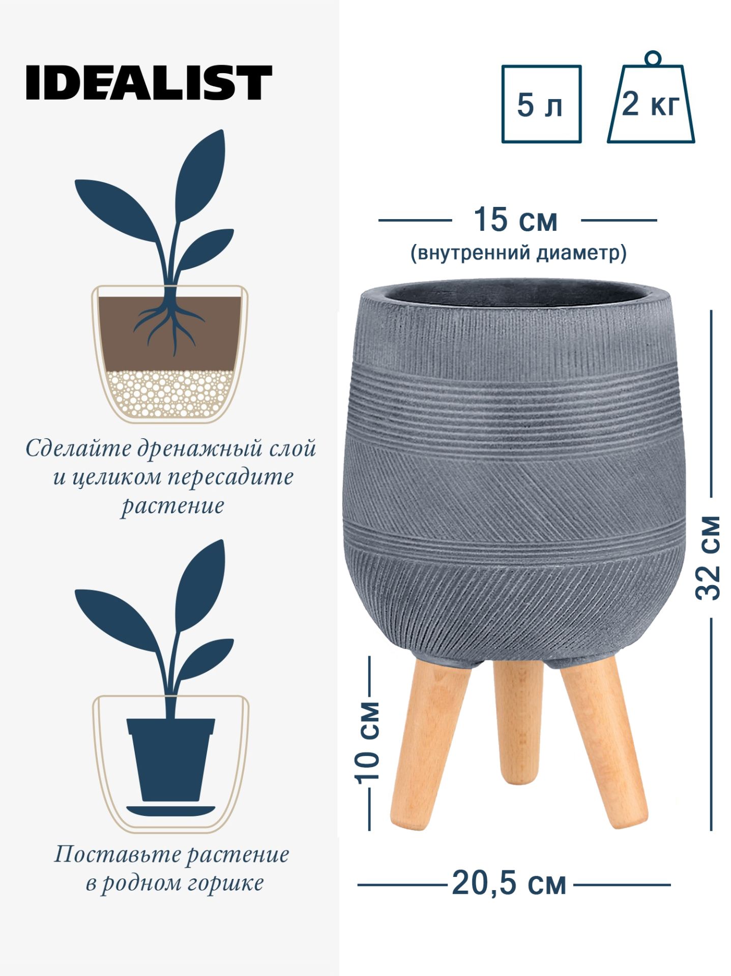 Обратите внимание, что гарантийные обязательства, правила и порядок удовлетворения гарантийных случаев, требований возврата и обмена зависят от маркетплейса приобретения кашпо IDEALIST. В случае возникновения недоразумений, пожалуйста, свяжитесь с нами по телефону: