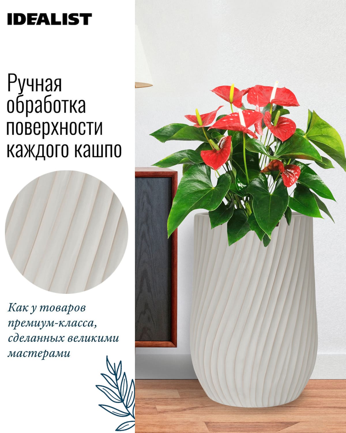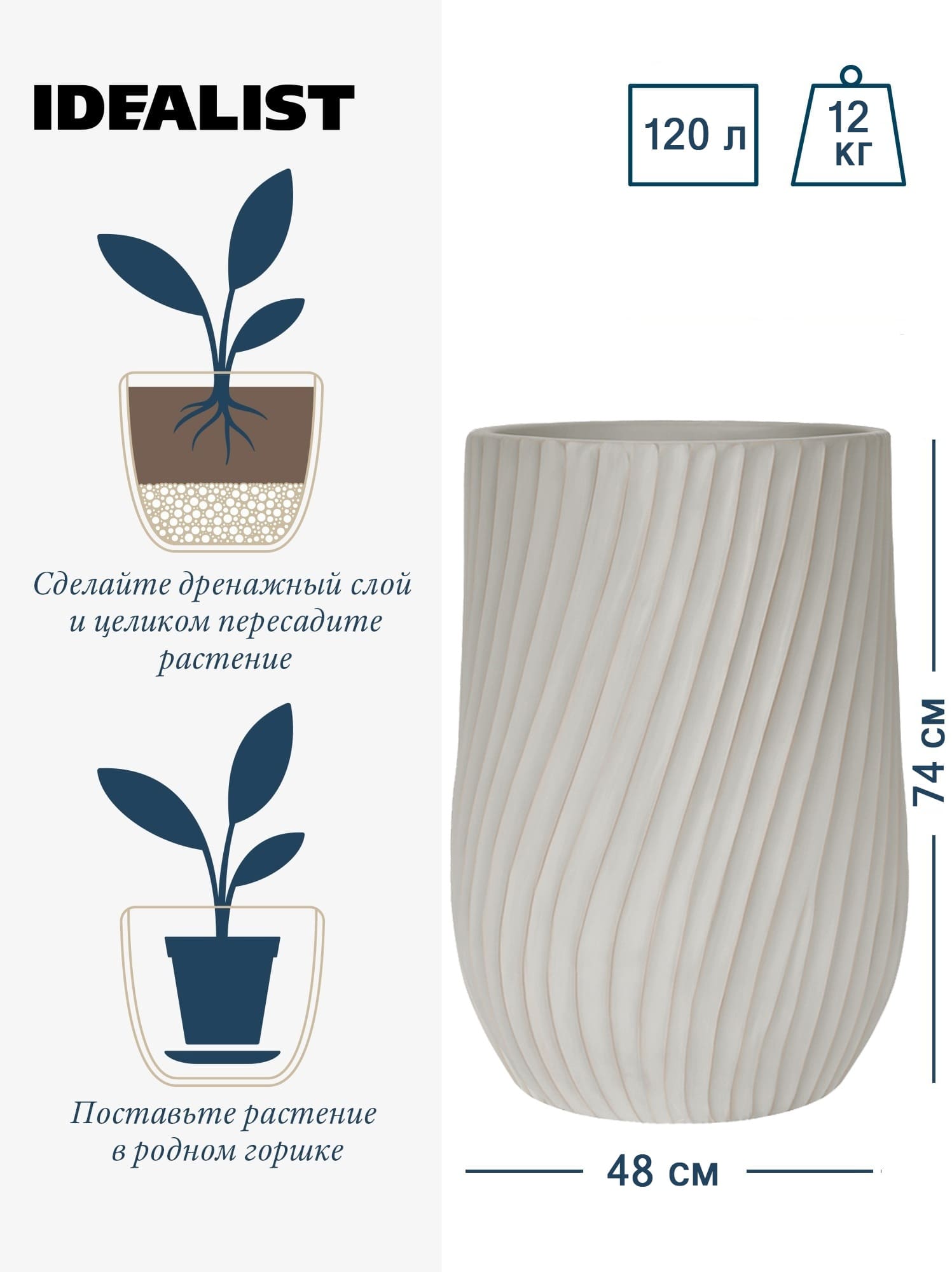 Обратите внимание, что гарантийные обязательства, правила и порядок удовлетворения гарантийных случаев, требований возврата и обмена зависят от маркетплейса приобретения кашпо IDEALIST. В случае возникновения недоразумений, пожалуйста, свяжитесь с нами по телефону:
