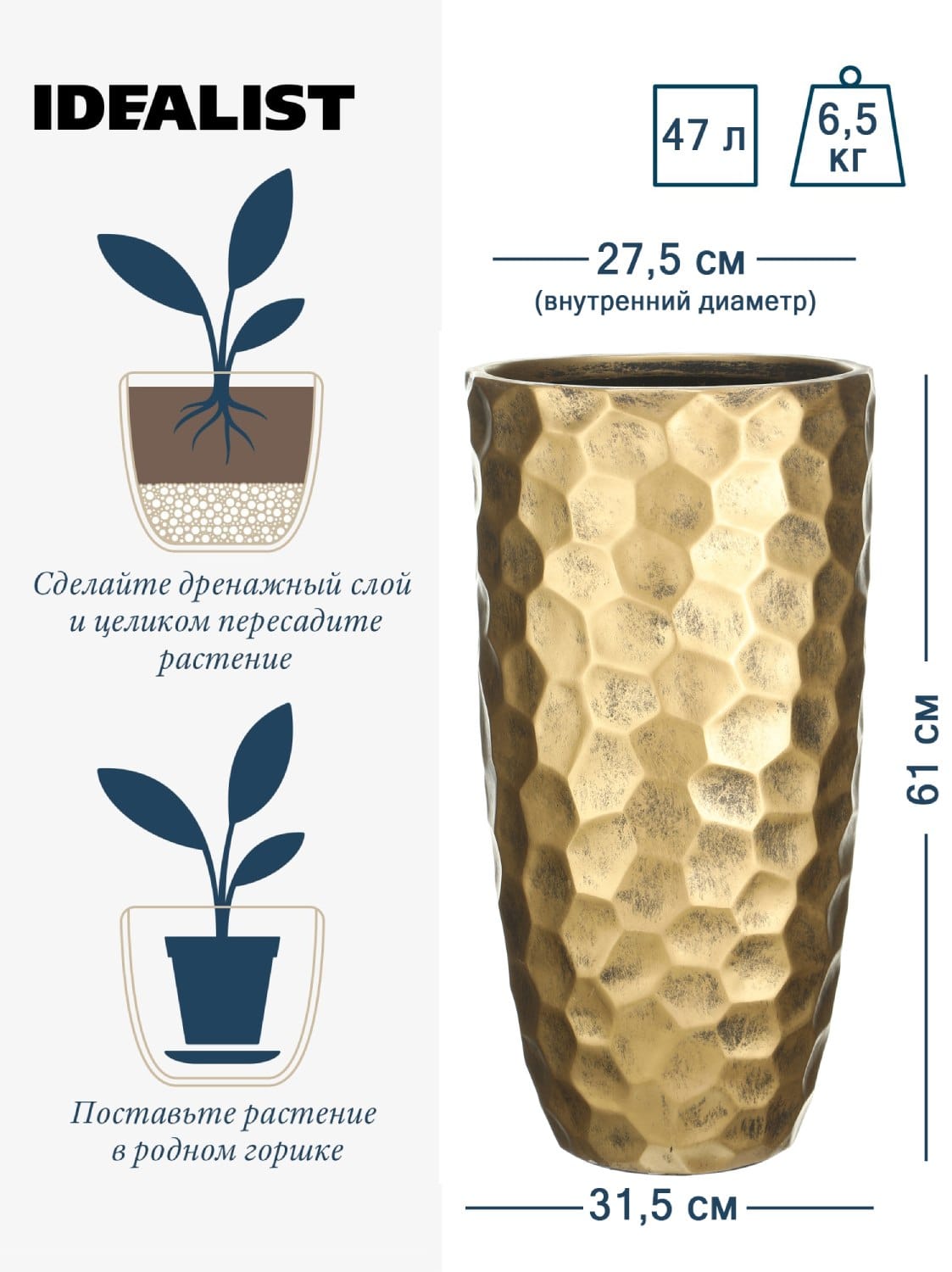 Напольное кашпо для цветов IDEALIST Мозаик, цвет золотистый шик, Д31.5 В61 см, 47 л, 6.5 кг