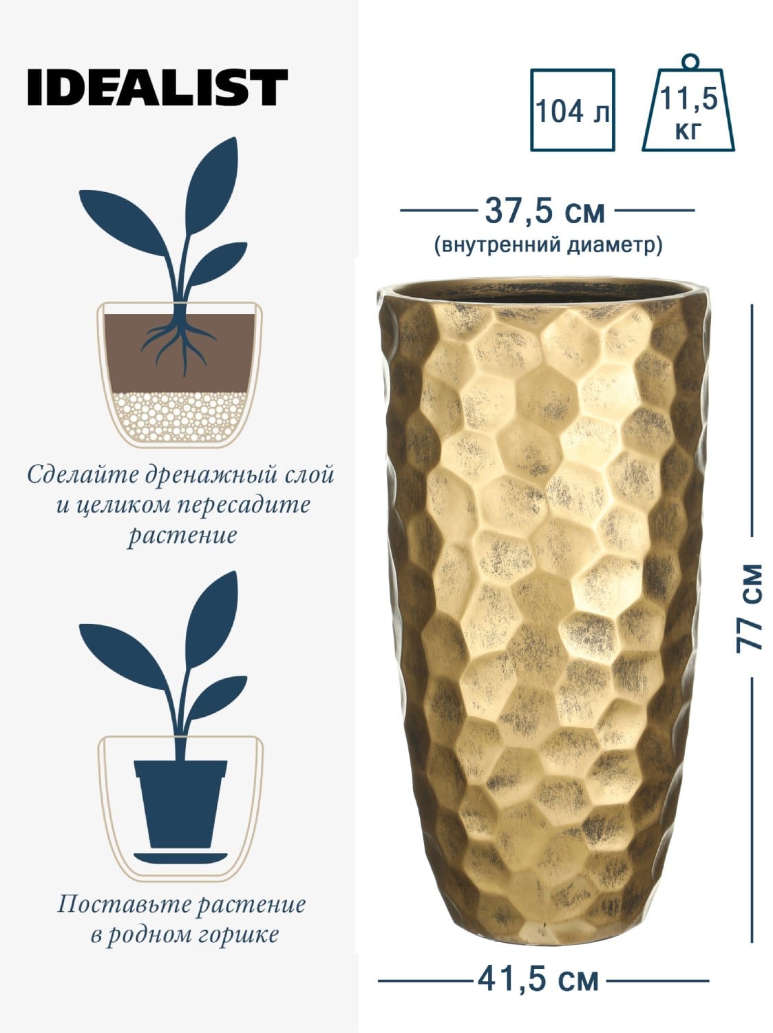 Обратите внимание, что гарантийные обязательства, правила и порядок удовлетворения гарантийных случаев, требований возврата и обмена зависят от маркетплейса приобретения кашпо IDEALIST. В случае возникновения недоразумений, пожалуйста, свяжитесь с нами по телефону: