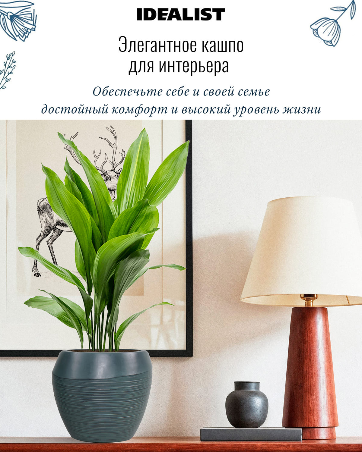 В кашпо IDEALIST можно сажать комнатные растения, которые растут в грунте (не гидропоника). Также можно сажать сезонные уличные растения, например, петунии или гортензии.