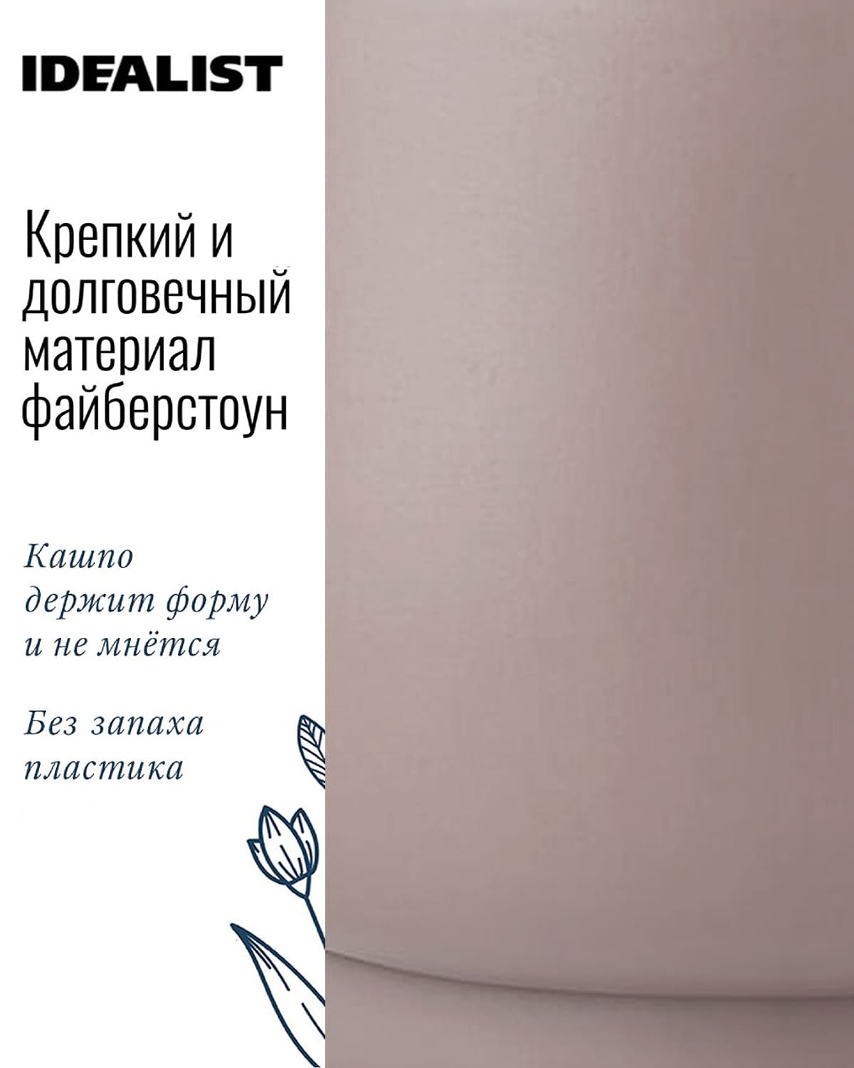Обратите внимание, что гарантийные обязательства, правила и порядок удовлетворения гарантийных случаев, требований возврата и обмена зависят от маркетплейса приобретения кашпо IDEALIST. В случае возникновения недоразумений, пожалуйста, свяжитесь с нами по телефону: