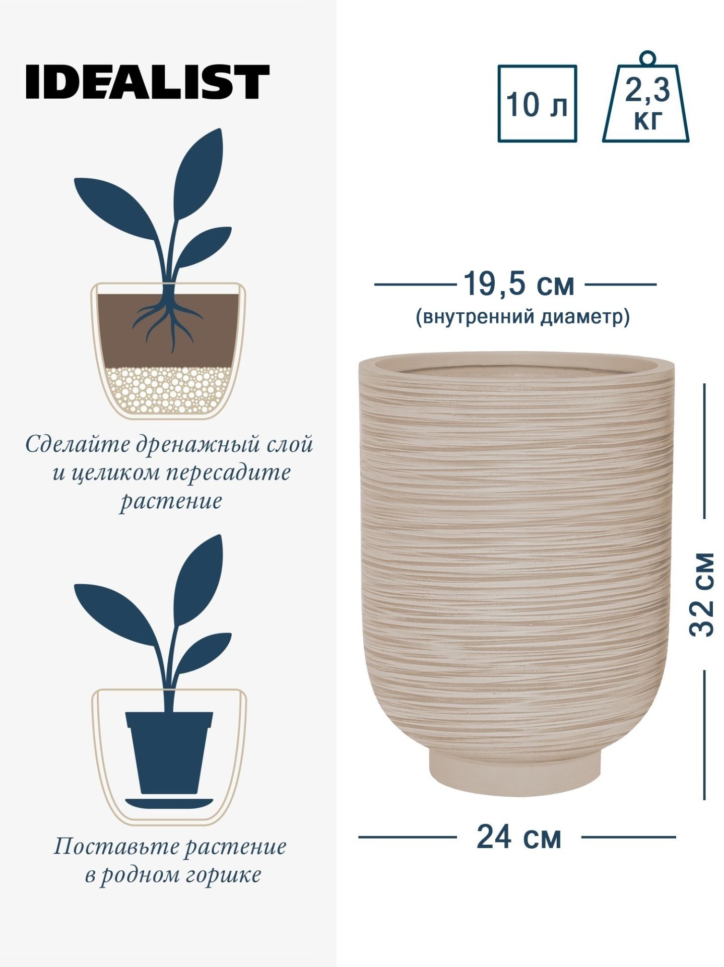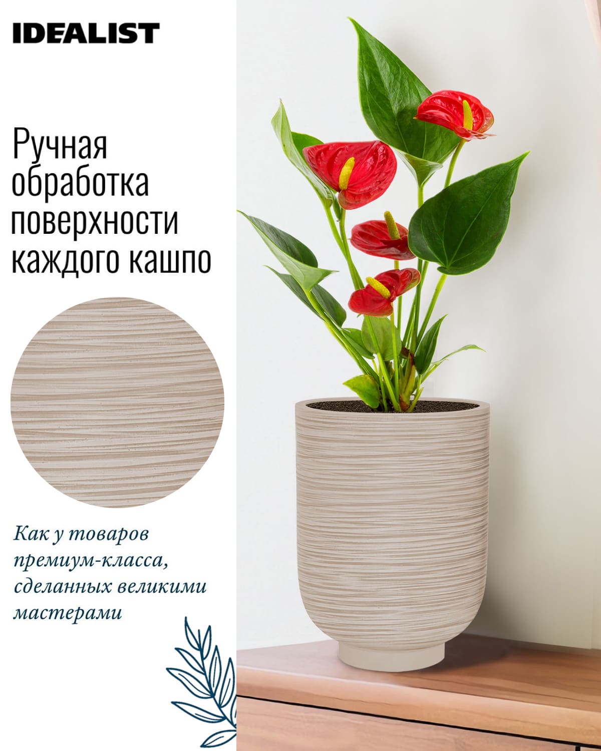 Обратите внимание, что гарантийные обязательства, правила и порядок удовлетворения гарантийных случаев, требований возврата и обмена зависят от маркетплейса приобретения кашпо IDEALIST. В случае возникновения недоразумений, пожалуйста, свяжитесь с нами по телефону: