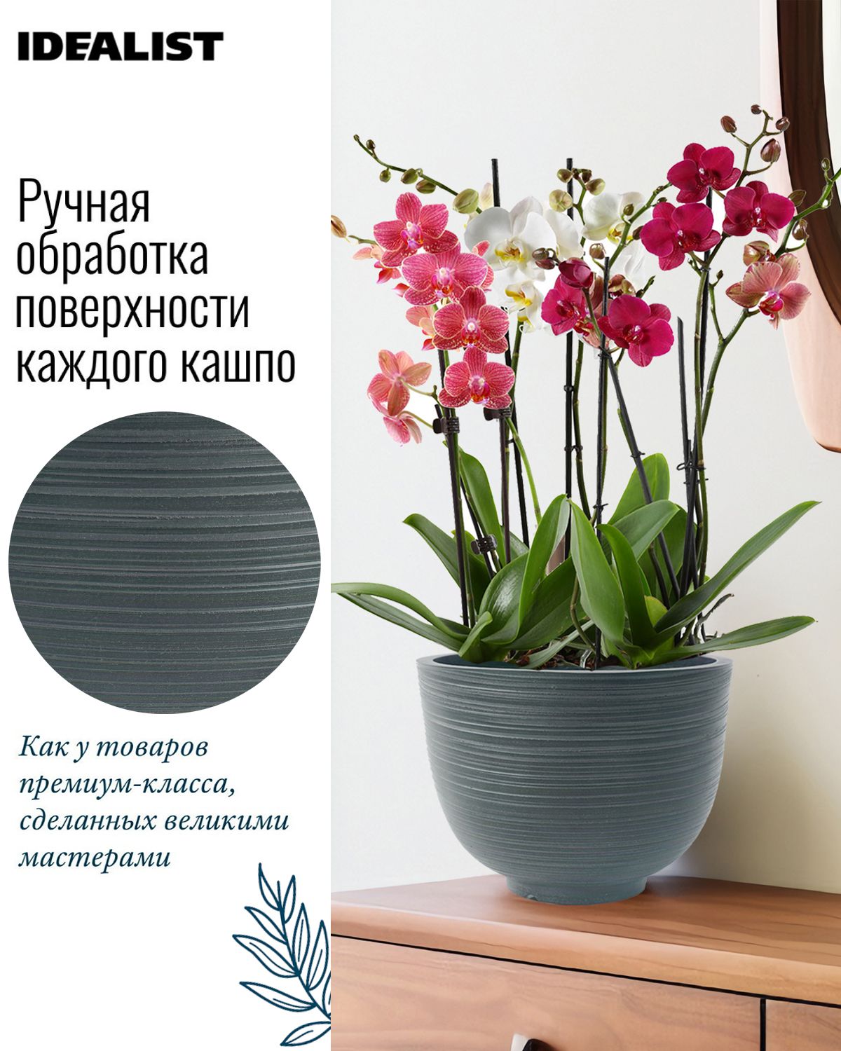 Обратите внимание, что гарантийные обязательства, правила и порядок удовлетворения гарантийных случаев, требований возврата и обмена зависят от маркетплейса приобретения кашпо IDEALIST. В случае возникновения недоразумений, пожалуйста, свяжитесь с нами по телефону: