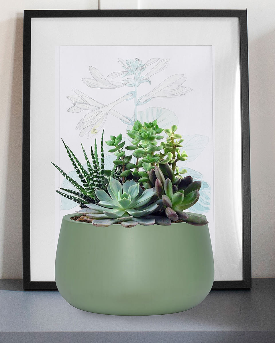 На дне кашпо (кроме моделей на ножках) есть метки для дренажных отверстий. Но просверливать их не обязательно. Вместе с кашпо вы получите печатную инструкцию с разными вариантами посадки, где не нужно утруждать себя сверлением.
