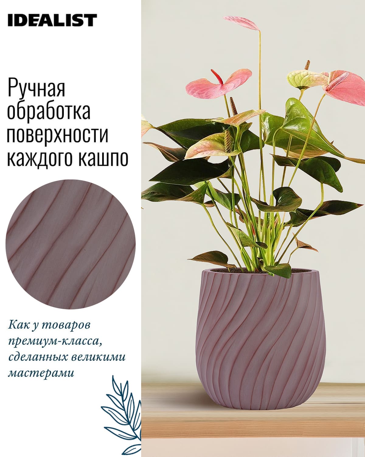 Обратите внимание, что гарантийные обязательства, правила и порядок удовлетворения гарантийных случаев, требований возврата и обмена зависят от маркетплейса приобретения кашпо IDEALIST. В случае возникновения недоразумений, пожалуйста, свяжитесь с нами по телефону: