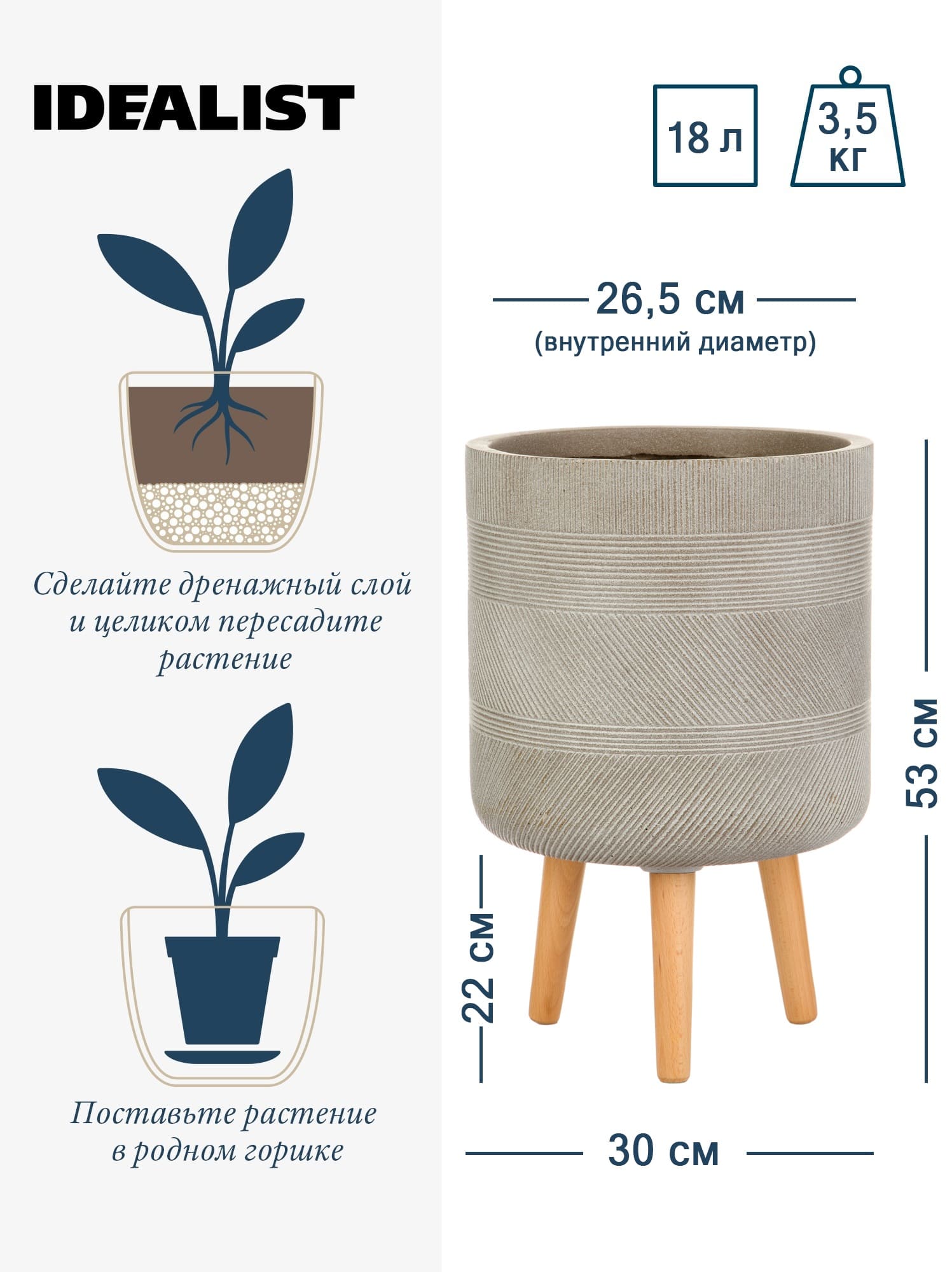 Напольное кашпо для цветов IDEALIST Страйп, круглое, цвет кофе с молоком, Д30 В53 см, 18 л, 4 кг