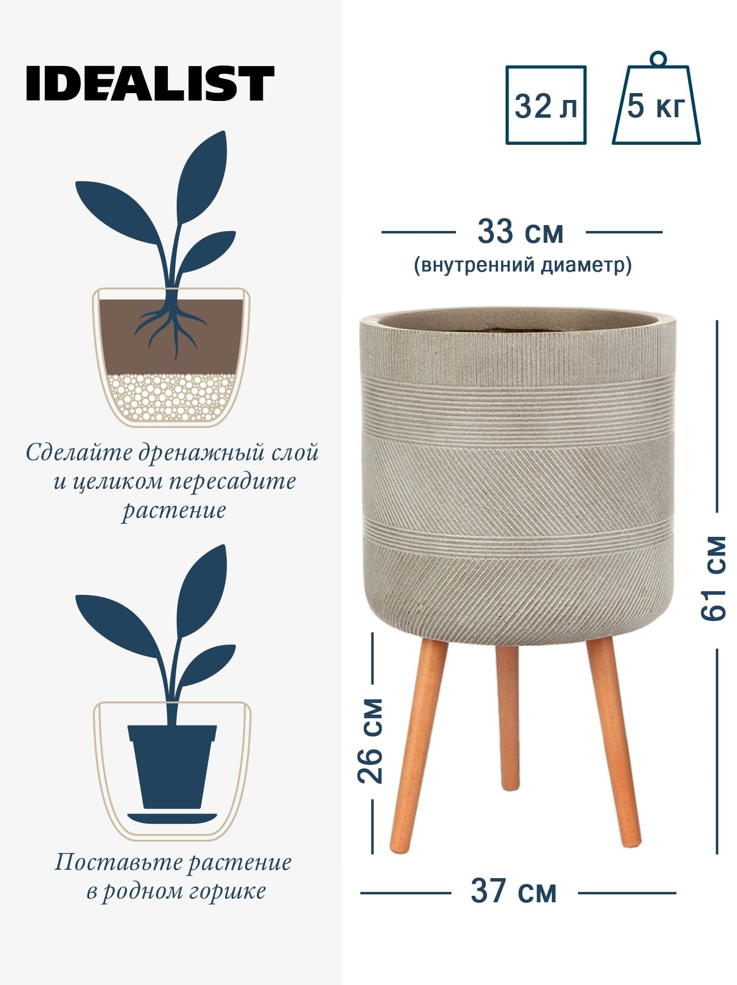 Инструкция по посадке растений в кашпо IDEALIST